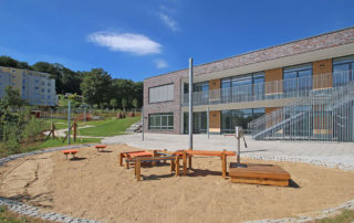 Der Neubau der sechsgruppigen Tagesstätte für Kinder an der Rudolfstraße befindet sich auf dem Grundstück der ehemaligen Grünanlage des Sportplatzes in Wuppertal.